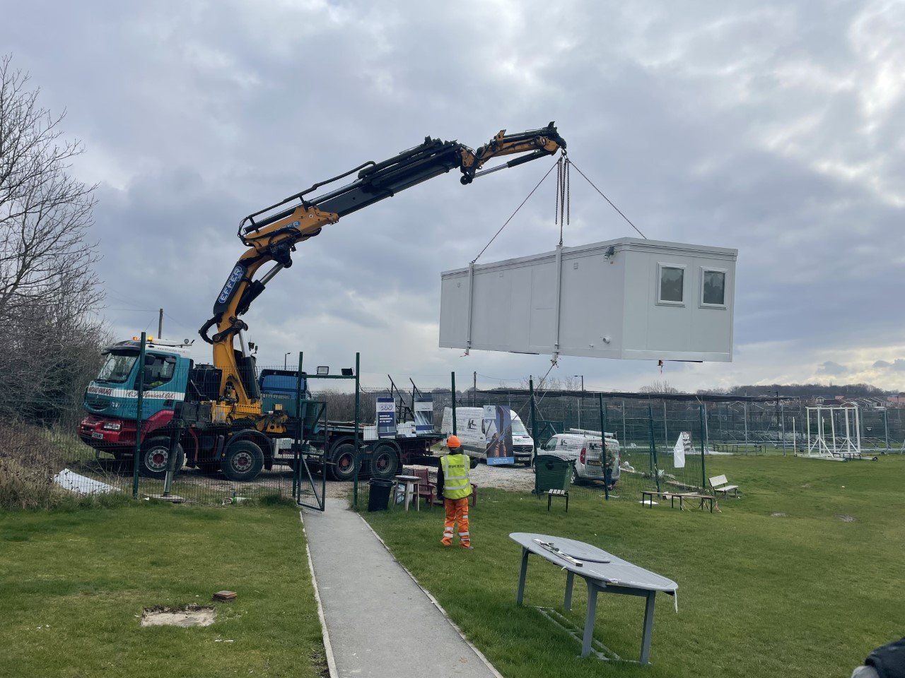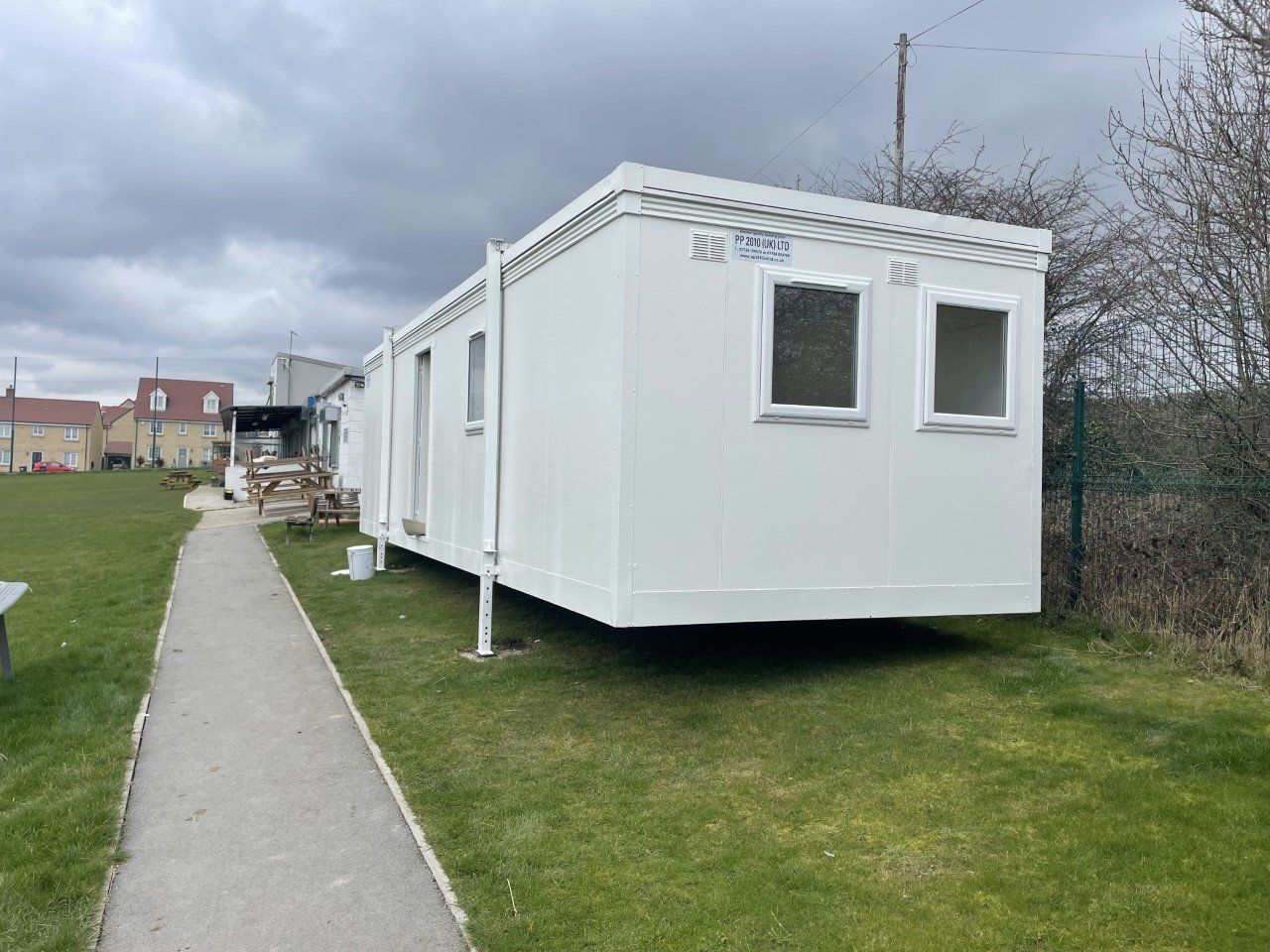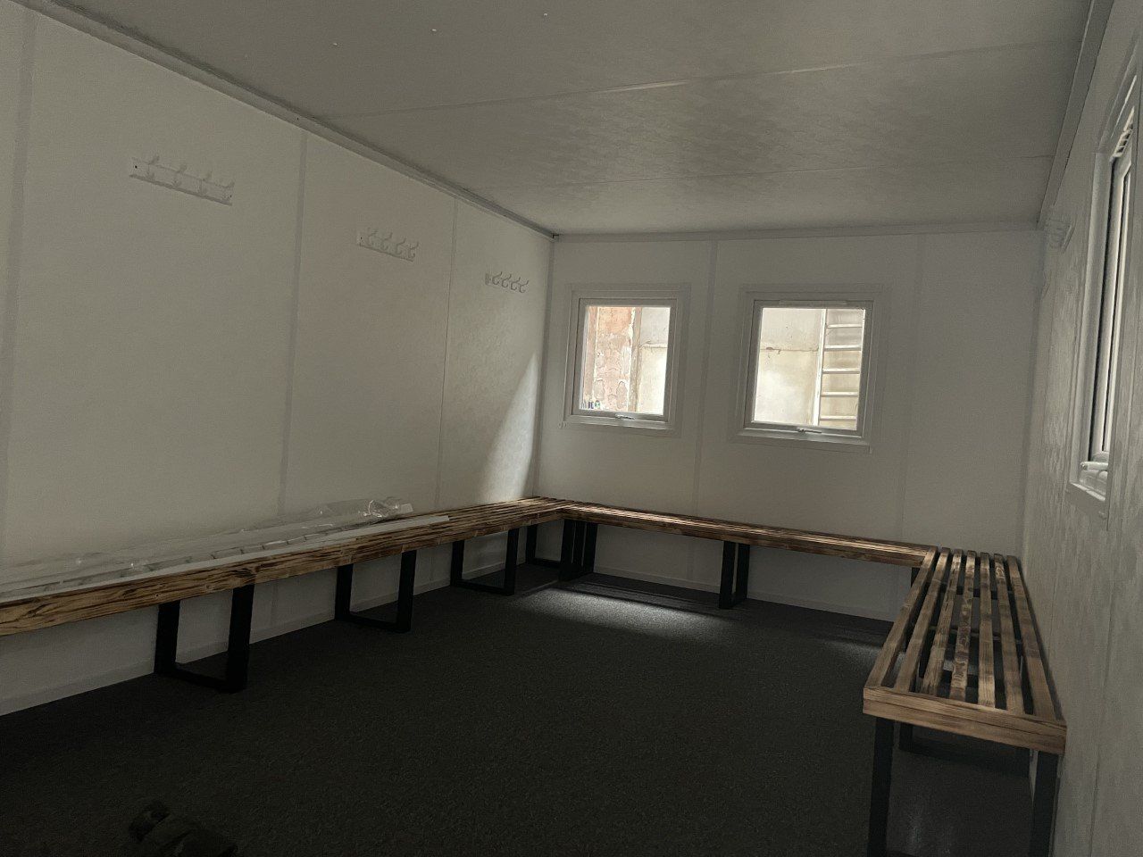 This is a single 32" unit fully refurbished for a local Cricket Club including a changing room, shower room, toilet, store and handmade benches.